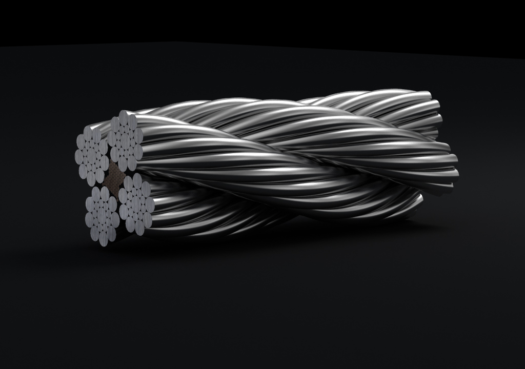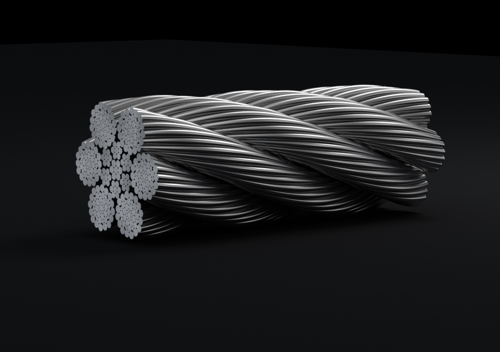 鋼絲繩由多根鋼絲按照一定的規則捻制而成的繩索。由制繩鋼絲、繩股、繩芯和繩用油脂組成。